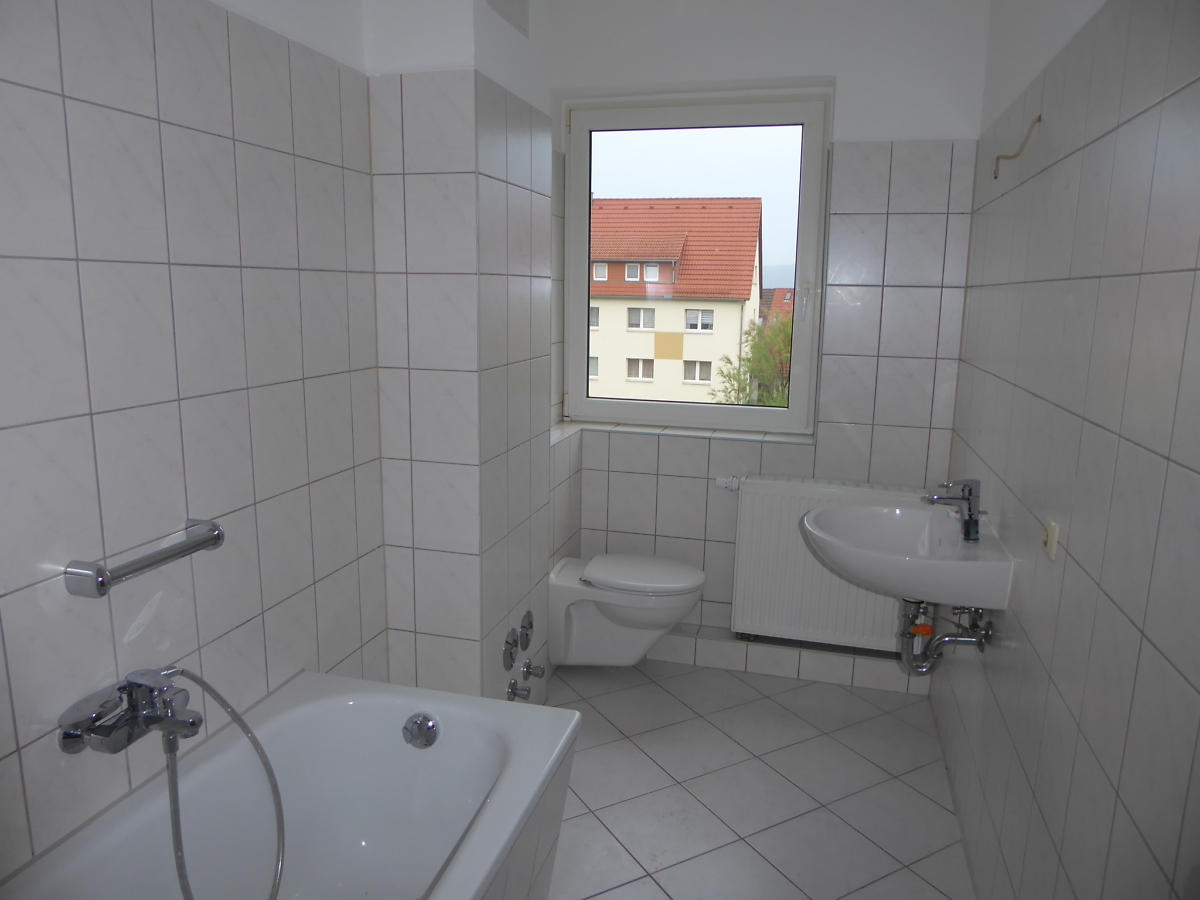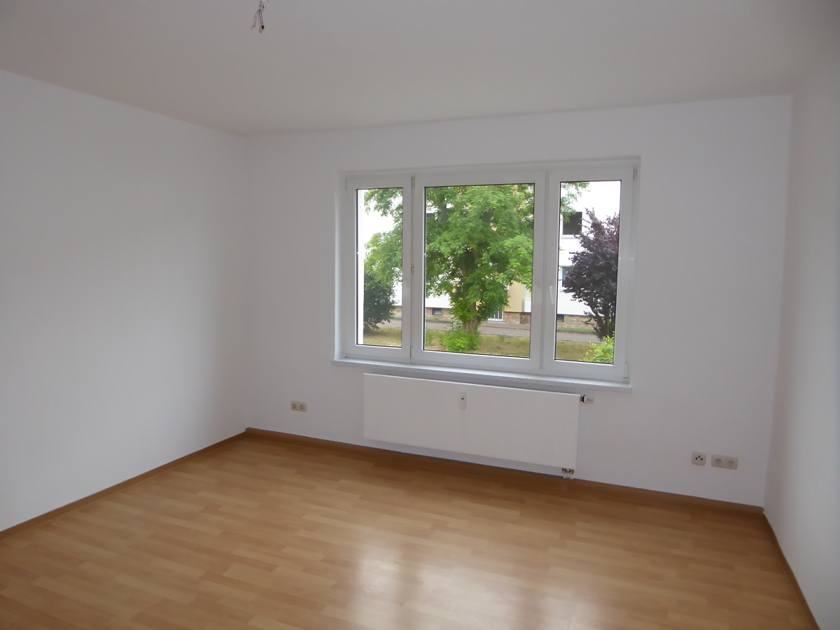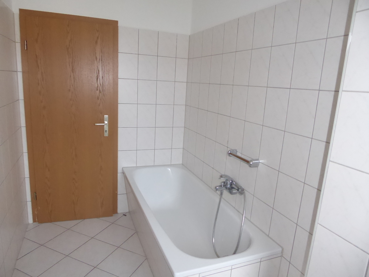 Sanierte 3-Raum Wohnung, Bad gefliest mit Wanne, Raufaser weiß, Küche und Flur mit CV-Belag, Wohn- und Schlafzimmer mit Laminat; Telefon- und Kabelanschluss; Mieterkeller vorhanden